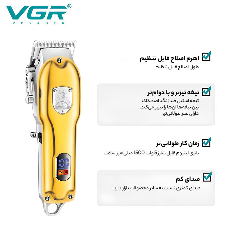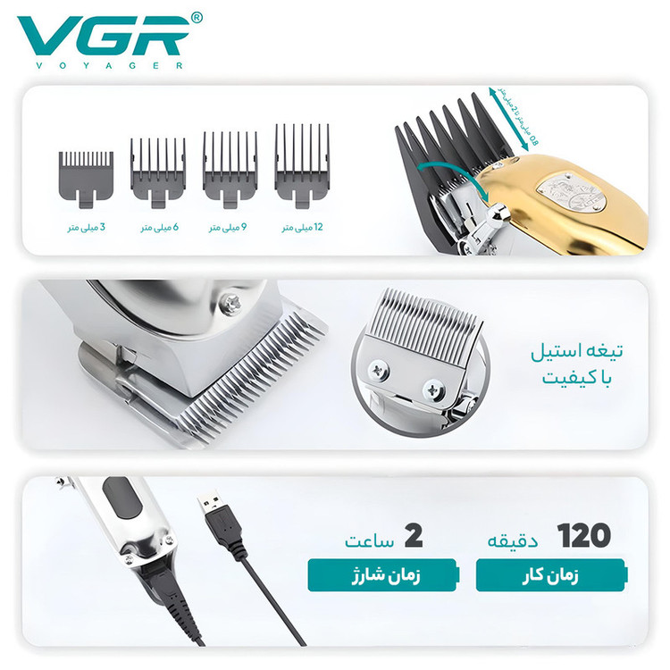 ماشین اصلاح حرفهای وی جی آر V-652 | تیغه ضد زنگ و باتری قدرتمند