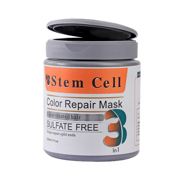 ماسک مو بدون سولفات استم سل مدل 3 در 1 حجم 500 میل مخصوص موهای رنگ شده و هایلایت شده فرموله شده و غنی شده از مواد تقویت کننده مو است. این ماسک مو فوق ملایم بدون ایجاد احساس خشکی و خارش پوست سر مناسب مصرف روزانه خانمها است. بانوانی که موهای خود را کراتینه، رنگ، دکلره و هایلایت کردهاند میتوانند با هدف تثبیت رنگ مو و حفاظت از موهای خود از این محصول با کیفیت استفاده کنند. از دیگر مزیتهای خرید ماسک مو استم سل آبرسانی و احیای مو است. این ماسک فاقد پارابن، دی اکسان، مواد شیمیایی مضر و سولفات بوده و هیچ گونه عوارض و آسیبی برای موها به دنبال ندارد.