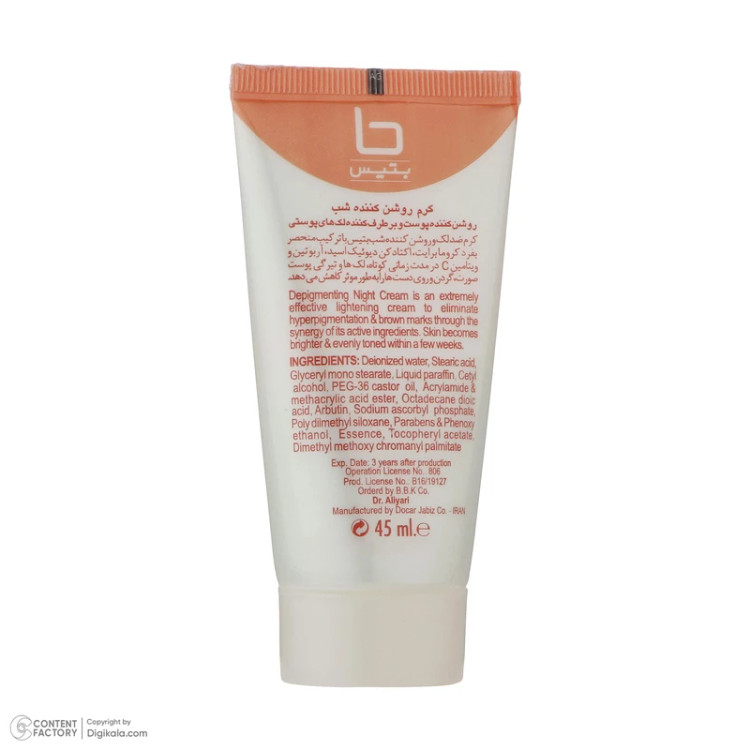 کرم روشن کننده شب صورت و بدن بتیس فارما