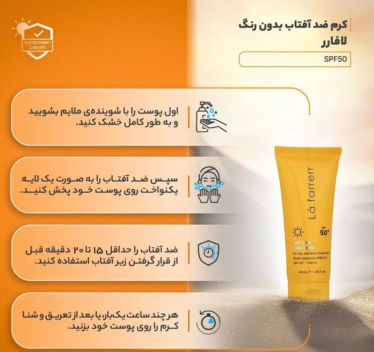 کرم ضدآفتاب و ضدلک بیرنگ مناسب پوستهای چرب و مستعد آکنه +SPF 50 لافارر