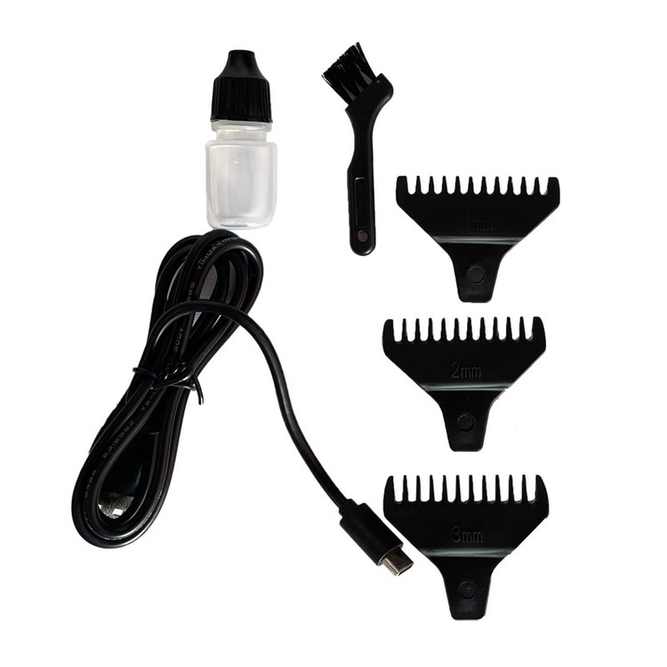 برس پاک کننده و روغن و کابل شارژ type C و 3 عدد شانه در سایز های مختلف
