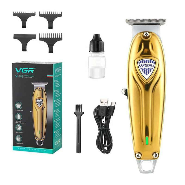 ماشین اصلاح V-188 نیز یکی از محصولات این برند است. این ماشین اصلاح با دو قابلیت خط زنی و صفرزنی و تکنولوژی برش مستقیم کاملا حرفهای و مرزبندی شده موهای سر و صورت را اصلاح میکند.