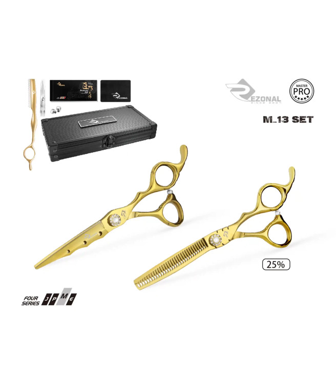 ست قیچی مستر رزونال محصولی بسیار کاربردی که از محبوبیت بالایی در بین آرایشگران برخوردار است. مناسب برای کوتاهی و کم حجم کردن مو است.